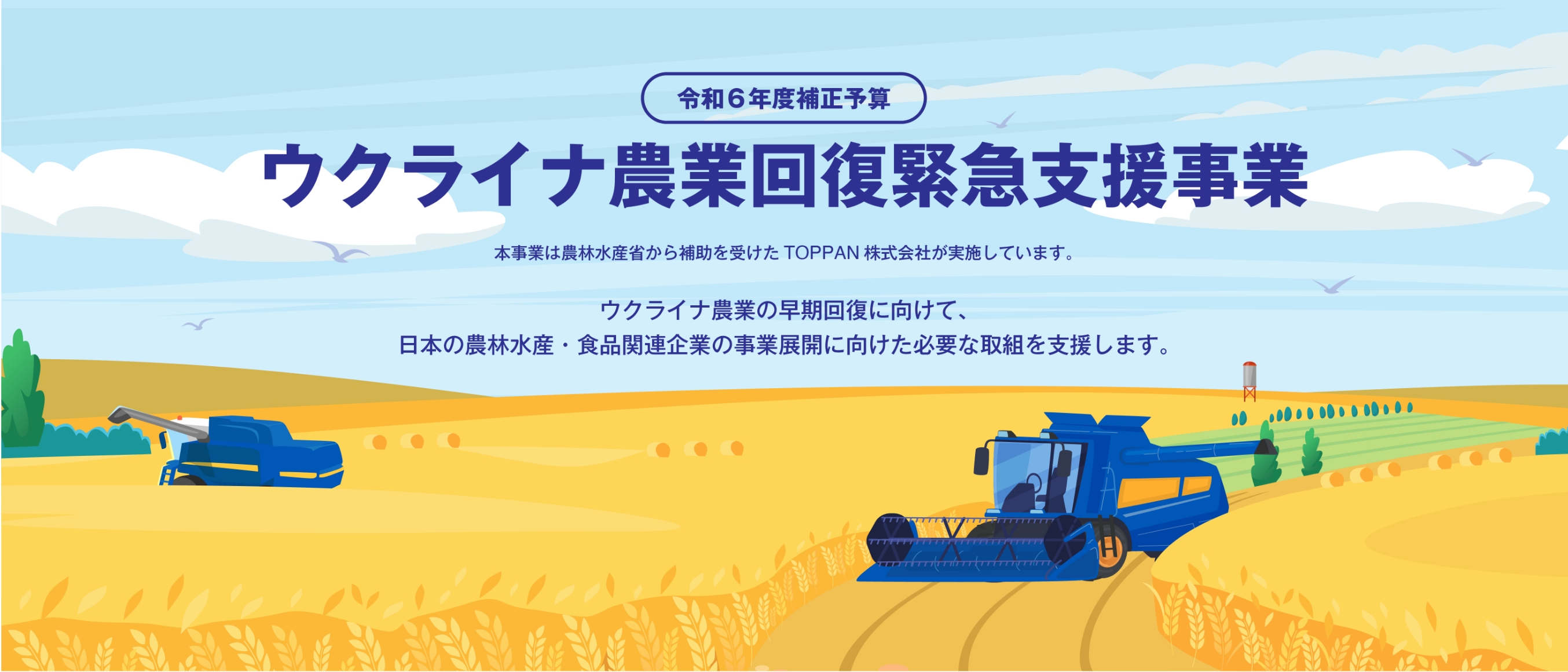 本公募は、農林⽔産省「ウクライナ農業回復緊急⽀援事業」(令和6年度補正予算額201百万円)の⼀部として⾏われます。
